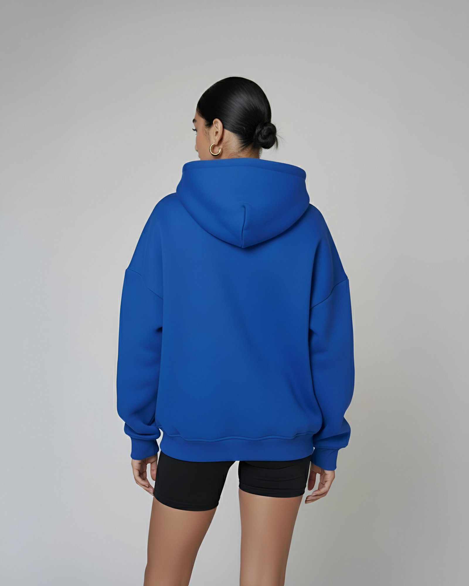 Designed for comfort that lasts and moments that matter. This oversized heavyweight hoodie is crafted from a premium cotton–fleece blend, delivering exceptional warmth with a soft, structured feel. The relaxed silhouette offers effortless style, while the rich royal blue tone keeps the look timeless and minimal.